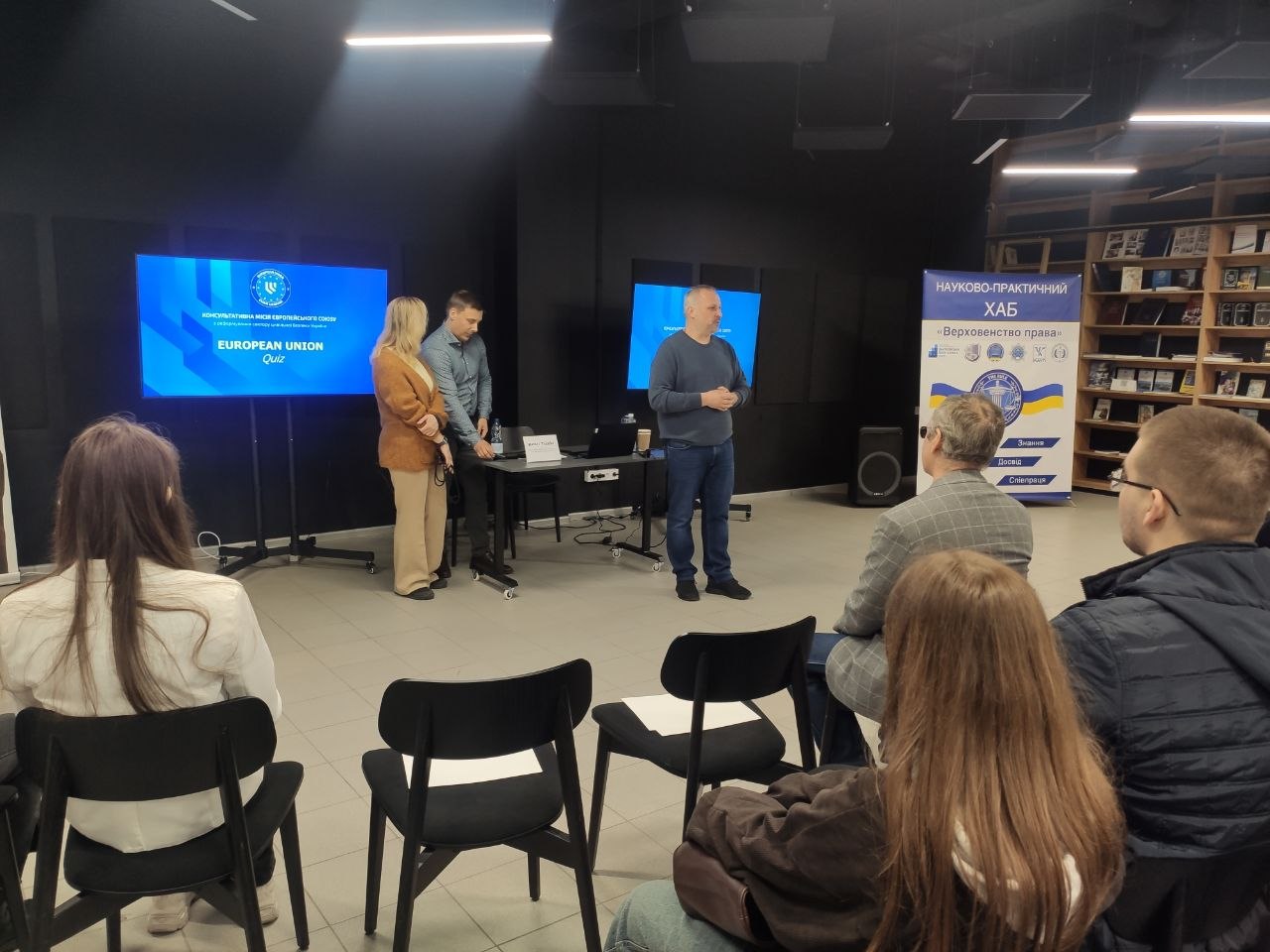 Під час спілкування учасники вдосконалювали знання з права Європейського Союзу, практикували юридичну англійську, обговорювали принцип верховенства права та обмінювалися думками щодо євроінтеграційних процесів в Україні.