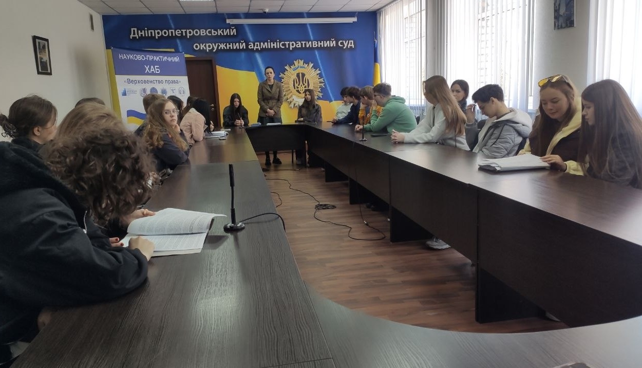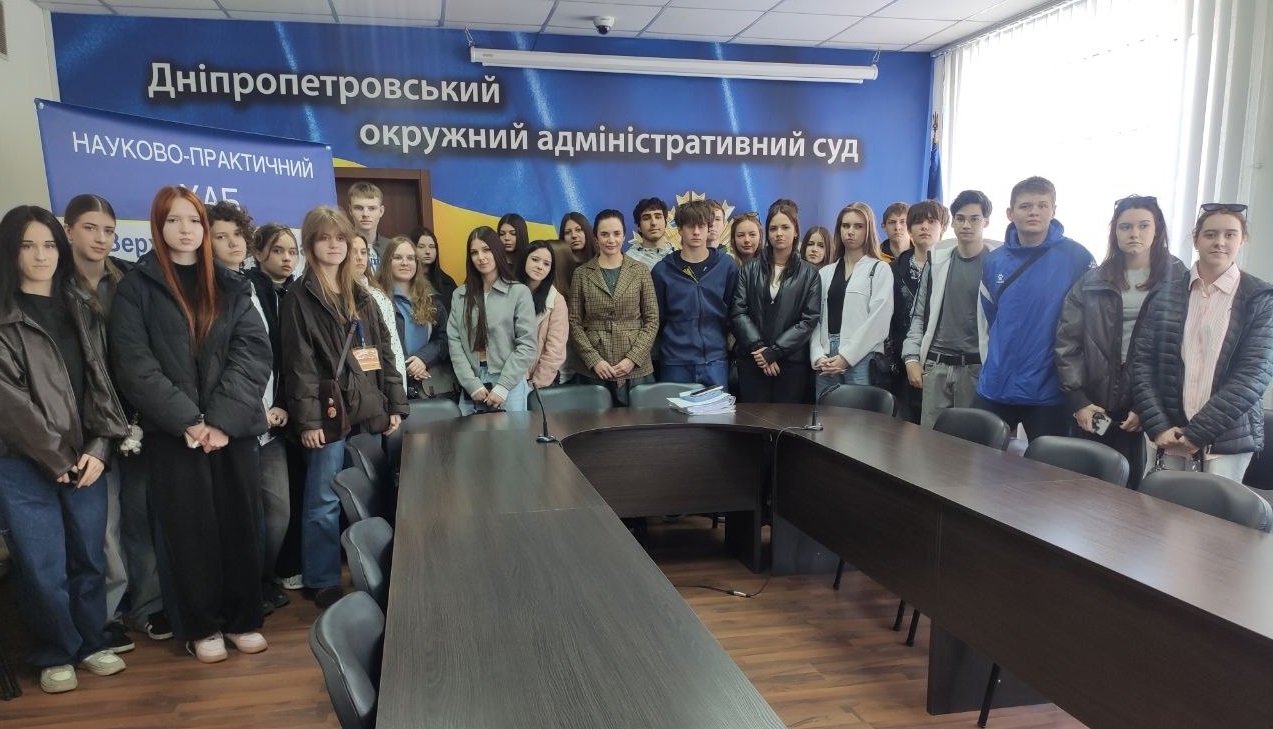 Дніпропетровський окружний адміністративний суд став майданчиком для пізнавальної зустрічі з молоддю, яка вже сьогодні замислюється над майбутнім у сфері права. Суд відвідали учні випускних класів історико-правового профілю Дніпровського ліцею № 15 Дніпровської міської ради, а також старшокласники Дніпровської гімназії № 34, Дніпровського ліцею № 36 та Дніпровської гімназії № 128 Дніпровської міської ради. До заходу долучилася і команда проєкту «ЗнайТи Правовий хаб».